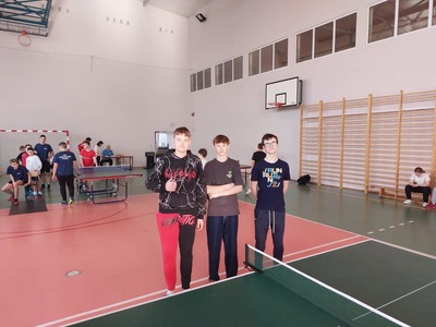 Eliminacje powiatowe XXV Mazowieckich Igrzysk Dzieci i Młodzieży Szkolnej w drużynowym tenisie stołowym stały pod znakiem dominacji ekip gospodarzy- zespołów ZSP Jedlińsk. W gronie 10- ciu szkół, w 11- tu rozegranych meczach trzy nasze drużyny nie przegrały żadnego pojedynku tracąc zaledwie trzy sety. O ile oczekiwaliśmy wygranych ekip dziewcząt i chłopców starszych to mecze drużyny chłopców młodszych, którzy są trzecioklasistami były niewiadomą. Jednak ostatecznie nie ustępowali rywalom starszym o dwa, trzy lata. Szczególnie cieszą wygrane w końcówkach wyrównanych setów. Jedynie w trzech pojedynkach przeciwnicy rozstrzygnęli na swoją korzyść pierwsze sety, ale po poradach opiekunów kolejne partie padały łupem naszych pingpongistów. Kolejne zawody potwierdziły dobrą decyzję sprzed trzech lat o utworzeniu klasy sportowej w naszej szkole. Zajęcia lekcyjne wsparte dodatkowymi treningami pod okiem Bogdana Religi w Victorii Jedlińsk przynoszą wspaniałe efekty. Pod koniec marca odbędzie się rywalizacja w rozgrywkach międzypowiatowych. Stawką awans do finału wojewódzkiego.