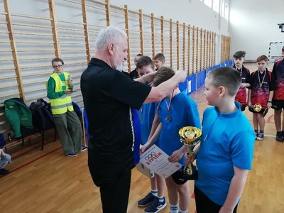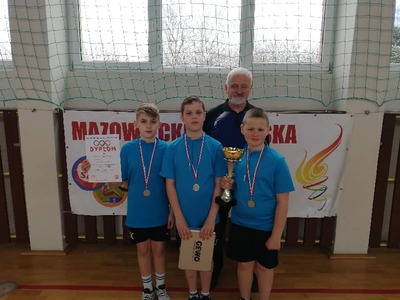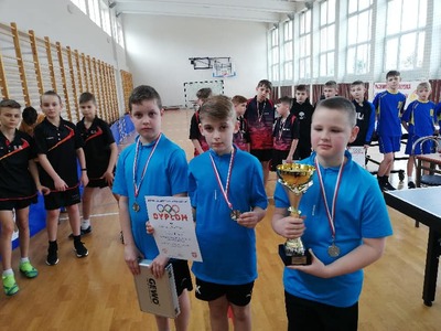 Niezwykle skutecznie zaprezentowały się drużyny ZSP Jedlińsk w eliminacjach międzypowiatowych XXV Mazowieckich Igrzysk Dzieci i Młodzieży Szkolnej w drużynowym tenisie stołowym. Do Jedlińska przyjechało 46 zespołów szkolnych, które rywalizowały o prawo występu w finałach wojewódzkich w czterech kategoriach. W pierwszym dniu walczyli chłopcy, w tym dwie ekipy Jedlińska. Po cichu liczyliśmy na dobry start naszych chłopaków, szczególnie drużyny starszej. Jan Ziółek, Filip Szymczak i Michał Sułek nie zawiedli. W grupie wygrali wszystkie spotkania. W ćwierćfinale pokonali PSP nr 3 z Kozienic 3:0. W półfinale w tym samym stosunku „odprawili” Bikówek. Finał zakończył się przegraną 1:3 z PSP Wałsnów ale chłopcy już mogli się cieszyć ze srebrnych medali i awansu na zawody wojewódzkie. Rewelacyjnie zagrała młodsza drużyna, którą tworzyli w komplecie trzecioklasiści. W rywalizacji z szóstoklasistami i piątoklasistami z innych szkół warunki fizyczne mogły odegrać istotną rolę Tymczasem nasi pokonali kolejno po 3:0 zespoły Głowaczowa, Ciepielowa i Lipska. W ćwierćfinale wygrali z drużyną ze Starej Błotnicy, tracąc pierwszego seta. Półfinał z PSP Nr 6 z Radomia decydował o awansie. Radomianie byli przekonani, że to spotkanie wygrają. Nic z tego. Mimo porażki w pierwszej grze Janka Ferusia, w kolejnej Szymon Kowalski wyrównał wynik. W grze deblowej Szymon i Kacper Bieniek zagrali świetnie i pokonali rywali 2: 0 w setach do 3 i 4. Decydujący punkt dorzuca Feruś i mecz wygrywamy 3:1! Mamy drugi zespół w finale Mazowsza. W meczu o złoty medal zwyciężyli faworyci – reprezentanci PSP nr 17 Radom, którzy wygrali z Jedlińskiem 3:0. W drugim dniu wystąpiły dziewczynki młodsze. Nasz zespół, rozstawiony z nr 1, bronił złotego medalu wywalczonego przed rokiem. Nikola Belica i trzecioklasistki Maja Małek, Zuzia Jarosińska oraz Lila Dębniak wygrywały gładko po 3:0. Jedynie pojedynek Nikoli z koleżanką klubową, reprezentującą Kozłów, dostarczył kibicom nieco emocji. Belica, po wygranym pierwszym secie, uległa w grze na przewagi w drugim. Decydujący set odbył się pod dyktando Nikoli. Finał z Lesznowolą zakończył się wynikiem 3:0. W finałach wojewódzkich region radomski reprezentować będzie aż trzy zespoły ZSP Jedlińsk.