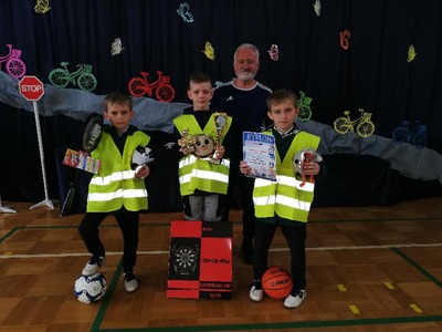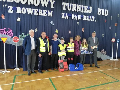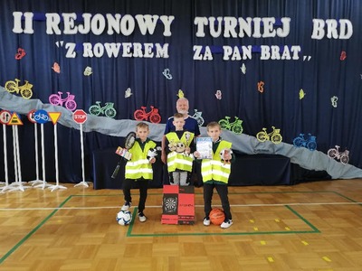 Adam Bogacki, Dawid Frączyk i Szymon Frączyk z klasy Va wygrali drużynową rywalizację w II Rejonowym Turnieju BRD „Z rowerem za pan brat”, którego gospodarzem i organizatorem była PSP w Starych Zawadach. Uczestnicy musieli zmierzyć się z pytaniami testowymi z zakresu zasad ruchu pieszych i rowerzystów oraz zasad pierwszeństwa przejazdu na drodze. Drugie zadanie to wykazanie się umiejętnością pokonywania przeszkód umieszczonych na torze, który należało przejechać w określonej kolejności bez podpórek, potrąceń czy niedozwolonych zjazdów. Trzecią konkurencją była jazda po miasteczku ruchu drogowego zgodnie z przepisami. Na zakończenie organizatorzy przygotowali konkurencję drużynową, w której należało ułożyć na czas puzzle obrazujące znaki drogowe. W gronie dziewięciu szkół ekipa Jedlińska spisała się najlepiej pokonując dwie drużyny gospodarzy oraz szkoły z Radomia, Wilkowa, Jedlanki, Wierzchowin, Ludwikowa i Bierwiec. W klasyfikacji indywidualnej po prymat sięgnął Adam Bogacki, który wygrał wszystkie konkurencje. Organizatorzy zadbali o bogatą oprawę imprezy. Był pokaz udzielania pierwszej pomocy przedmedycznej, prezentacja wozu bojowego straży pożarnej i inne atrakcje. Wszyscy uczestnicy otrzymali upominki w postaci maskotek a najlepszych uhonorowano wartościowymi nagrodami rzeczowymi, pucharami i pamiątkowymi statuetkami.