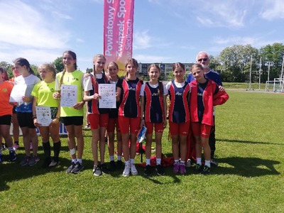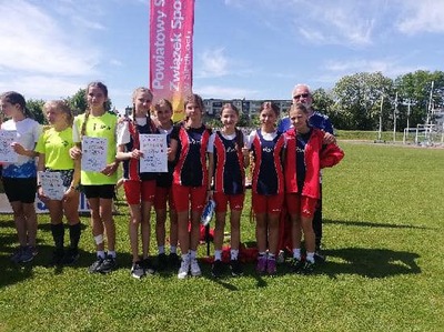 Sprawdziły się obawy opiekunów zespołu czwórboistek dotyczące występu w finale XXV Mazowieckich Igrzysk Dzieci w Siedlcach. Zaledwie dzień odpoczynku po starcie w eliminacjach regionalnych to zbyt krótki okres pozwalający na odpowiednią regenerację sił. Podopieczne Aliny Cielniak i Krystiana Kilara zaczęły bojowo w biegu na 60 m. Jednak z każdą konkurencją, szczególnie w biegu na 600 m, zmęczenie uwidaczniało się coraz bardziej. Nasze szóstoklasistki ostatecznie sklasyfikowano w połowie stawki, na ósmym miejscu. Powtórzenie wyniku sprzed dwóch dni z Radomia gwarantowało strefę medalową. Za ambitną postawę całego zespołu dziękujemy i jeszcze raz gratulujemy udziału w finale. Ósma lokata zapewniła cenne punkty do klasyfikacji szkół w ogólnym współzawodnictwie igrzysk. W nim ZSP Jedlińsk powinien zająć bardzo wysoką lokatę. W zespole Jedlińska wystąpiły: Amelia Gryz, Nikola Dobrowolska, Łucja Walczak, Maja Żaczek, Nikola Żaczek, Michalina Adamczyk.