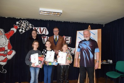 XVI Mikołajkowy Gminny Turniej Szachowy zgromadził na starcie rekordową ilość 54 uczniów ze szkół całej gminy. W gronie najlepszych znaleźli się Monika Gruszka i Karol Stężalski z ZSP w Jedlińsku. Monika, która startowała w kategorii kl. IV i młodszych, była sprawczynią sporej niespodzianki eliminując po drodze dwójkę szachistów z Wierzchowin, którzy od trzech lat dominują w gminie w najmłodszych kategoriach. Monika dotarła do finału i dopiero w nim uległa rozstawionej z jedynką kolejnej reprezentantce z Wierzchowin. Drugie miejsce Moniki to duży postęp naszej czwartoklasistki. Gratulacje! Karol Stężalski został zdobywcą trzeciego miejsca w kategorii klas V – VI. W pojedynku o trzecią lokatę wygrał ze szkolnym kolegą Adamem Bogackim. Brawo chłopaki! W najstarszej kategorii klas VII – VIII, pod nieobecność naszych najlepszych, którzy wyjechali do Międzygórza w ramach Euroweeku. najlepiej zaprezentował się Tymoteusz Molenda, który odpadł w ćwierćfinale (miejsca 5-8). Poza wymienionymi, ZSP Jedlińsk reprezentowali Jan Feruś, Jan Głogowski, Kacper Bieniek, Liliana Dębniak, Mateusz Szymczak, Maria Makulska, Tunar Aliev, Rufat Aliev, Seweryn Konopka i Filip Gryz.