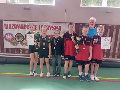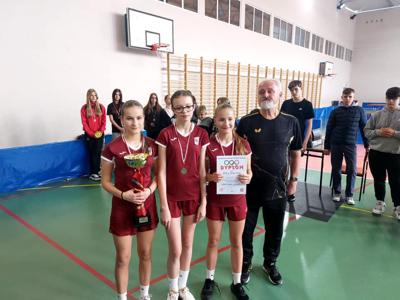 Przez dwa dni sale gimnastyczne ZSP w Jedlińsku zostały opanowane przez tenisistów stołowych. W eliminacjach międzypowiatowych XXVI Mazowieckich Igrzysk Dzieci i Młodzieży Szkolnej w drużynowym tenisie stołowym wystąpiło 48 zespołów szkolnych, w tym 4 drużyny naszej szkoły. Rywalizowano o prawo występu w finałach wojewódzkich w czterech kategoriach. Występ ekip Jedlińska okazał się znakomity, uwieńczony zdobyciem czterech medali. Złote krążki wywalczyły drużyny dziewcząt w obu kategoriach wiekowych. W młodszej, Maja Małek i Liliana Dębniak wygrały wszystkie mecze po 3:0, tracąc w całym turnieju zaledwie 2 sety. Medal w starszej grupie, i to od razu złoty, został zdobyty po trzyletniej przerwie. Liderka ekipy, Nikola Belica, nie przegrała żadnej gry a dzielnie jej sekundowały siostry Maja i Nikola Żaczek. W półfinale doszło do rewanżu z ekipą z Kozłowa, z którą w eliminacjach powiatowych nasza drużyna przegrała 2:3. Tym razem, zawodniczki Jedlińska okazały się lepsze, wygrywając przekonywująco 3:1. Finał ze Starym Gozdem okazał się łatwiejszy. Gładkie 3:0 bez większych emocji. Wśród chłopców czwartoklasiści skutecznie obronili tytuł wicemistrzów rejonu sprzed roku. Jan Feruś, Szymon Kowalski i Kacper Bieniek, w rywalizacji z szósto- i piątoklasistami z innych szkół, dotarli do finału. W nim, ulegli ponownie ubiegłorocznym mistrzom Mazowsza – zawodnikom z PSP NR 17 z Radomia 0:3. By sięgnąć po srebrne medale chłopcy musieli się sporo napracować. Emocji nie brakowało, szczególnie w wygranych po 3:2 meczach z PSP Nr 5 z Radomia, i w półfinale, z ekipą Starego Gozdu. Bardzo miłą niespodziankę sprawili chłopcy starsi. Kacper Brudnicki i Maciej Nowakowski dotarli aż do półfinału i dopiero w nim ulegli późniejszym złotym medalistom z PSP Nr 6 z Radomia. Podopieczni Sławomira Słomki, w meczu o 3. miejsce, zmierzyli się z PSP Lipsko. Rozstrzygnęli tę rywalizację na swoją korzyść, zapewniając sobie brązowe medale. Cztery miejsca na podium, awans trzech ekip do finału wojewódzkiego to olbrzymi sukces naszych uczniów. Wielkie brawa!