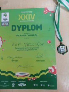 Z okolicznościowymi medalami i dyplomami imiennymi wróciła drużyna ZSP Jedlińsk z eliminacji powiatowych XXIV edycji o Puchar Tymbarku w piłce nożnej. Grający w kategorii U12, zespół naszej szkoły zmierzył się ze starszymi o rok rywalami z Gozdu, Makowa, Makowca i gospodarzami z Jedlni Letnisko, zajmując piąte miejsce. Mimo, że drużynę tworzyli chłopcy, w większości trenujący w Akademii Piłkarskiej Drogowiec Jedlińsk, to przewaga umiejętności technicznych przeciwników była wyraźna. Rywale górowali także pod względem warunków fizycznych. Nasi chłopcy na początku byli wyraźnie stremowani ale z meczu na mecz, umiejętnie instruowani przez opiekuna Macieja Hajduka, grali coraz lepiej. Mimo przegranych, walczyli z pasją i zaangażowaniem. Zdobyte doświadczenie zaprocentuje w kolejnych turniejach.