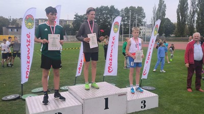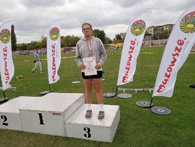 49-osobowa reprezentacja uczniów z klas V-VIII ZSP Jedlińsk wzięła udział w kolejnej edycji Międzynarodowych Zawodów Lekkoatletycznych im. Henryka Jakimiaka w Siedlcach. Nasi przedstawiciele zdobyli łącznie 14 medali: 4 złote, 4 srebrne i 6 brązowych, zapewniając sobie wygraną w klasyfikacji drużynowej szkół To drugie zwycięstwo z rzędu. ZSP Jedlińsk zgromadził 152 pkt i wyprzedził SP Zielonki- Parcela 145,5 pkt oraz SP Maciejowice 130 pkt. Na 14. miejscu uplasowała się najlepsza ekipa zagraniczna z Mariampola na Litwie. Łącznie sklasyfikowano 61 placówek. Wygrana naszej szkoły szczególnie cenna, bowiem w zawodach nie wzięli udziału uczniowie z rocznika klas czwartych, przebywający na wycieczce. Indywidualnie, w swoich kategoriach wiekowych, złote medale wywalczyli: Kacper Bieniek w rzucie piłką palantową, Antoni Kowalczyk i Dominik Grabowski w biegu na dystansie 1000m oraz Filip Molenda na 600m. Na drugim stopniu podium stanęli: Iga Lipiec w pchnięciu kulą, Maciej Karasek na 1000m oraz Natalia Czerniawska i Jędrzej Machniak w skoku w dal. Brązowe krążki przypadły: Ali Auguściak i Mai Małek w rzucie piłką palantową, Karolowi Gołdzie, Jakubowi Szelidze i Olkowi Kacprzakowi na 600m oraz Julii Bukowskiej w pchnięciu kulą. Wkład punktowy, za zajęcie miejsc 4-8, do klasyfikacji szkół, wniosło jeszcze 22 naszych uczniów: Piotr Skrzypczyński, Tymoteusz Makulski, Wojciech Tarnowski, Szymon Kowalski, Amelia Gryz, Maja Trzeciak, Nikola Stawczyk, Wiktoria Woźniak, Zuzanna Jarosińska, Emil Gryz, Wiktor Simlat, Antoni Ćwiklak oraz biegający w sztafetach 4x100m lub olimpijskiej: Łucja Walczak, Alicja Warchoł, Alicja Czarnecka, Nikola Żaczek, Wiktoria Stawczyk, Weronika Janiec, Dawid Brzeziński, Franciszek Kustra, Filip Wójcicki i Marcel Michalski. Brawa dla wszystkich! Pieczę nad ekipą sprawowali: Radosław Ofiara, Sławomir Słomka i Krystian Kilar.