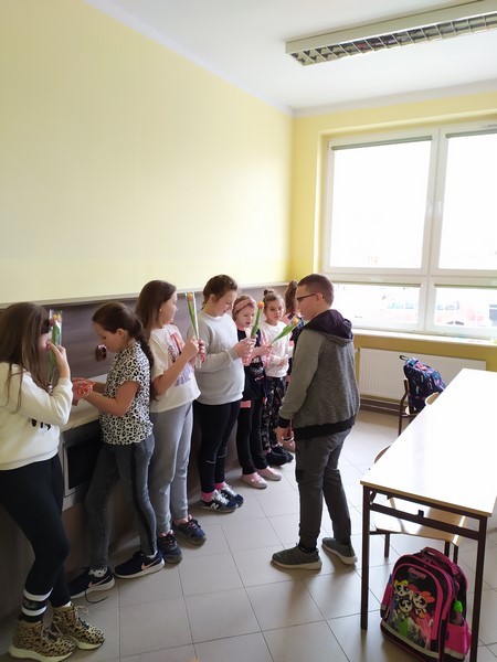 W poniedziałek 8 marca uczniowie klasy 3c wraz z wychowawczynią Krystyną Żuchowską radośnie obchodzili wyjątkowe święto – Dzień Kobiet.