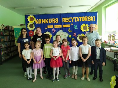 W dniu 24 .05.2021 r. w naszej szkole odbył się konkurs recytatorski ,,Wiosna wierszem malowana” zorganizowany w szkolnej bibliotece przez panią Katarzynę Konopkę i Anetę Kacprzak. Konkurs adresowany był do dzieci z klas 0-3 i miał formę prezentacji dowolnego utworu poetyckiego o tematyce wiosennej związanej z tą porą roku lub świętami w niej występującymi. Wiersze były ciekawe i barwnie zaprezentowane. Publiczność oklaskiwała gromkimi brawami wszystkich uczestników. Każdy otrzymał słodki upominek od pani dyrektor Elżbiety Religi. Jury w składzie: