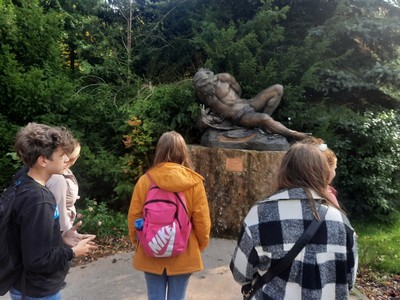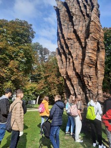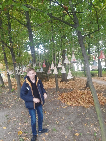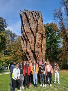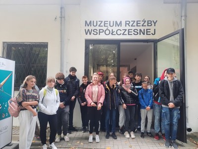 Dnia 06.10.2021r. uczniowie klasy 8 a i 8 b pod opieką pań polonistek wzięli udział w wycieczce do Centrum Rzeźby Polskiej w Orońsku. Zwiedzanie rozpoczęliśmy od zapoznania się z historią muzeum, które w bieżącym roku przeżywa 40 lat istnienia. W przeszłość zabrała nas twórczość Magdaleny Abakanowicz – najsłynniejszej polskiej rzeźbiarki na świecie. Potem cieszyliśmy oczy pięknymi i monumentalnymi rzeźbami prac Ursuli von Ryndingsvard – amerykańskiej artystki, jednej z najważniejszych osobowości XX i XXI wieku. Spacer, po cudownym o tej porze roku parku, spowodował uczucie głodu. Kolejnym punktem było wspólne ognisko i zjedzenie smacznej kiełbasy. Przy okazji mogliśmy podejrzeć „na żywo” prace artystów rzeźbiarzy, którzy w trudzie pracowali nad swoimi dziełami. Na koniec wycieczki uczniowie wzięli udział w grze terenowej, w której musieli wykazać się sprytem, zwinnością i znajomością rzeźb znajdujących się na terenie muzeum. Najlepsze i najszybsze okazały się dziewczyny, które odgadły hasło i mogły cieszyć się laurem zwycięstwa. Dla wszystkich uczestników czekały drobne upominki. W dobrych humorach powróciliśmy do Jedlińska.