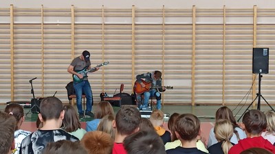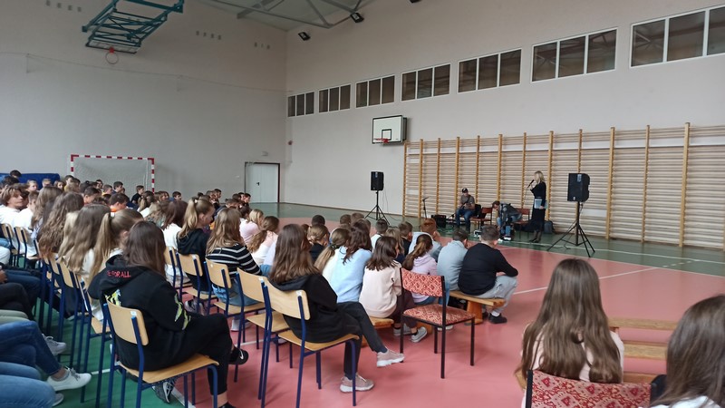 Zaangażowany w pracę profilaktyczną Jacek Musiatowicz wraz ze swym synem Michałem zaprezentowali uczniom program słowno-muzyczny, podczas którego zaakcentowana została wartość rodziny, relacje z rodzicami i ich szanowanie. W przekazie również przestrzegano przed zgubnymi wpływami używek oraz zagrożeniami wirtualnego świata.