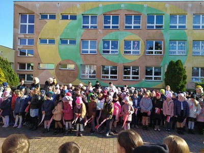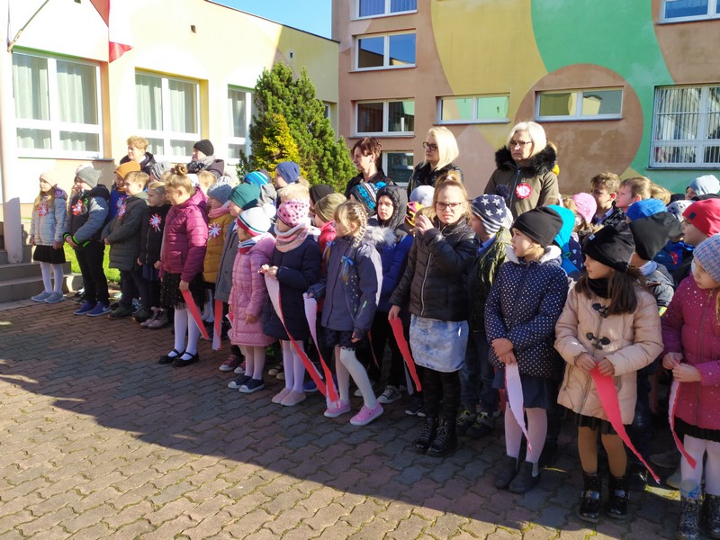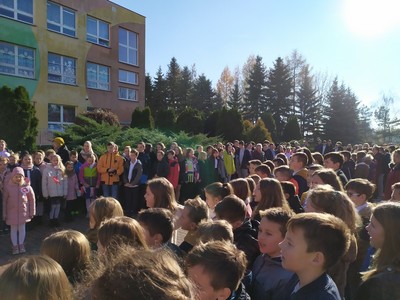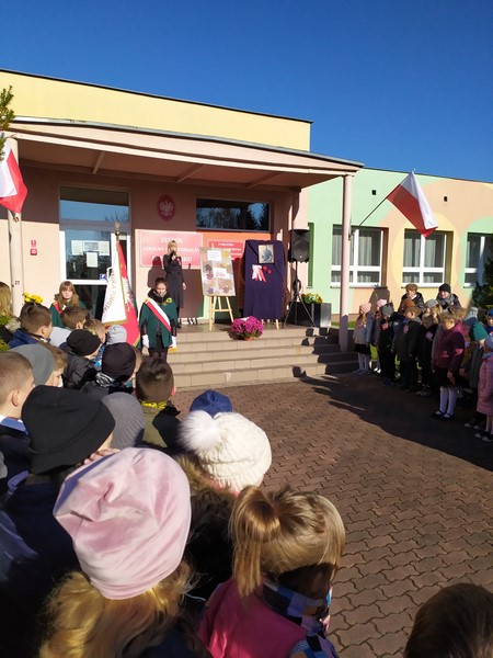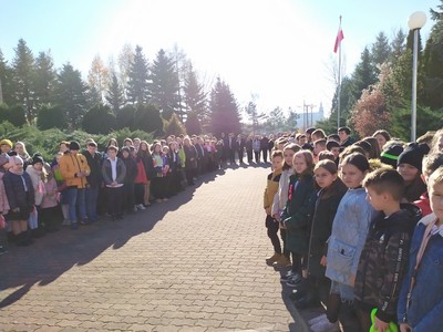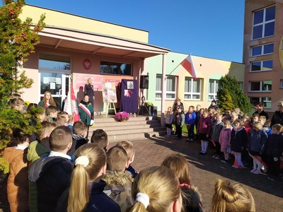 Pierwszego dnia wspólnego świętowania uczniowie wzięli udział w Patriotycznym Karaoke: każda klasa prezentowała wylosowaną wcześniej piosenkę żołnierską lub pieśń patriotyczną. Wśród wspaniałych wykonań, w pamięci jury konkursowego pozostały piosenki wykonane przez klasy: 4b, 5a oraz 7a i to właśnie uczniowie z tych klas zostali nagrodzeni słodkim upominkiem. W słoneczną środę, punktualnie o godz. 11.11 uczniowie klas 1-8 wspólnie odśpiewali hymn państwowy. Melodia wyśpiewana przez 413 młodych patriotów poniosła dźwięki mazurka w świat.... Piękne słońce dodało splendoru wzruszającej chwili - tak pełnej wzruszenia, tak pełnej radości...