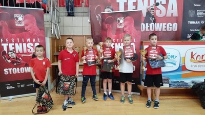 Wyróżniający się w postępach, uczniowie klasy sportowej II a wzięli udział, po raz pierwszy, w oficjalnych turniejach tenisa stołowego w Bilczy i Kowali. Turnieje prowadzono w relacji klubowej a nasi młodzi tenisiści startowali w barwach klubu ULKS Viktoria Jedlińsk, z którym szkoła współpracuje. W turnieju w Bilczy, zorganizowanym jako Festiwal Tenisa Stołowego przez Świętokrzyski Związek Tenisa Stołowego, zagrało 7 naszych reprezentantów w najmłodszych kategoriach. W gronie skrzatów wygrał Kacper Bieniek, trzecie lokaty zajęli Szymon Kowalski i Antoś Kowalczyk, piąty był Janek Feruś. W tej samej kategorii wiekowej wśród dziewcząt trzecie miejsca wywalczyły Lila Dębniak i Zuzia Jarosińska, piąte miejsce dla Leny Trzebieniak. Natomiast w amatorskim turnieju w Kowali ponownie wśród skrzatów wygrał Kacper Bieniek przed Szymonem Kowalskim, Lila Dębniak była piąta, szósta lokata przypadła Mai Małek (klasyfikacja dziewczęta i chłopcy razem). W Bilczy grali również nasi starsi uczniowie. Kacper Czerwiński uplasował się na miejscach 9-12. Z kolei, w Kowali, uczeń klasy VIIIb, Mikołaj Trzebieniak zajął trzecie miejsce w gronie amatorów. Dwoje naszych uczniów: Nikola Belica i Jan Ziółek, reprezentujący IKTS Broń Radom w Bilczy zajęli odpowiednio 3.i 9. miejsce. Nikola wywalczyła jeszcze 3. miejsce w Ogólnopolskim Turnieju RebelCup w Górznie k. Łaskarzewa, Janka sklasyfikowano na pozycjach 9-12.