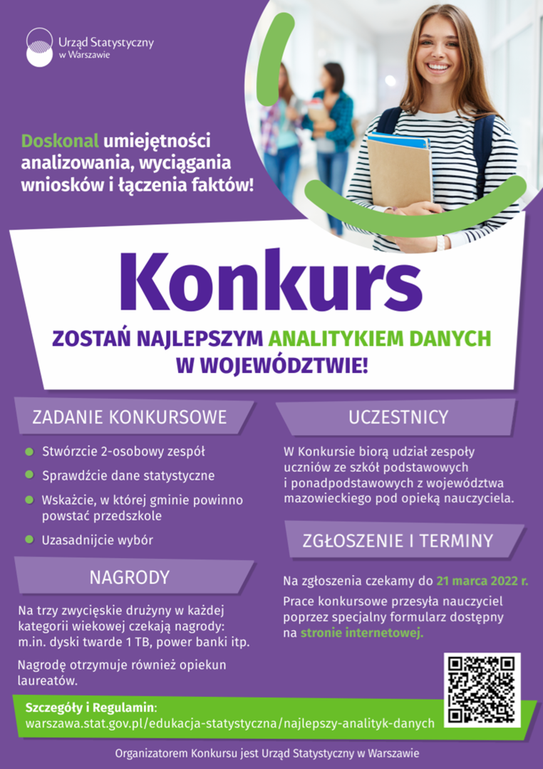Urząd Statystyczny w Warszawie organizuje Konkurs „Zostań najlepszym analitykiem danych w województwie”.