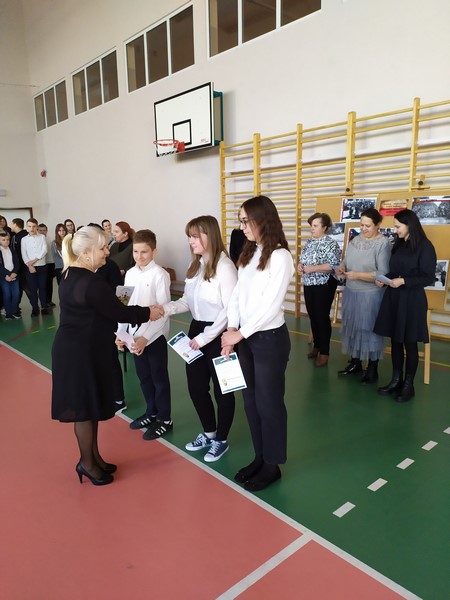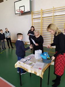 W tym dniu został również podsumowany program „Klasa z klasą” dla uczniów klas 4-8 za pierwsze półrocze. Tytuł „Klasa z klasą” otrzymali uczniowie z klasy 8B, której wychowawcą jest p. Monika Makulska. Gratulujemy!. Uczniowie w nagrodę pojadą do kina na wybrany przez siebie film a bilety zostaną ufundowane przez panią dyrektor szkoły Elżbietę Religę.