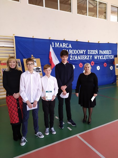 Dnia 1.03.2022 roku w naszej szkole miał miejsce apel dla klas 4-8 poświęcony Żołnierzom Wyklętym. Uczniowie klasy ósmej zaprezentowali część historii, która przez lata w wolnym i niepodległym kraju dla wielu pozostawała niejasna. Treść przedstawienia odnosiła się do postaci, działań oraz tragicznego losu Żołnierzy Wyklętych. Uzupełnieniem była wystawa „Czas Niezłomnych”. Obchody przygotowały p. Marta Powęską-Okoń oraz p. Justyna Bujek.