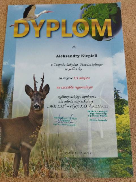 W dniu 11.05.2022r. w siedzibie Regionalnej Dyrekcji Lasów Państwowych w Radomiu odbyła się konferencja przyrodnicza nt. "By przetrwały... piękne krajobrazy, świat roślin i zwierząt."Konferencja dla opiekunów Szkolnych Kół LOP zorganizowana była we współpracy z Zarządem Okręgu LOP w Radomiu i Radomskim Ośrodkiem Doskonalenia Nauczycieli. W trakcie konferencji poruszano tematykę związaną z działalnością przyrodniczą prowadzoną na terenie Elektrowni Kozienice, realizacją projektu " Mała Retencja" i projektu Zwalczania Barszczu Sosnowskiego oraz Międzynarodowego Roku Zdrowia Roślin. Podczas konferencji odbyło się również podsumowanie konkursów organizowanych przez LOP w Radomiu. W konkursie " Mój Las" wzięło udział 42 uczniów z ZSP w Jedlińsku.