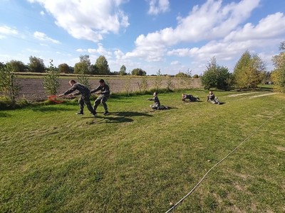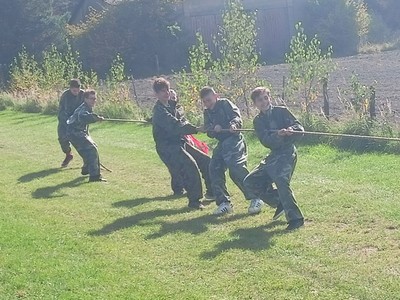 Główna atrakcja - laserowy paintball, był świetną okazją do integracji klasy oraz wykazania się sprawnością. Uczniowie spróbowali także swoich sił w przeciąganiu liny oraz w biegu na nartach. Podczas przerwy chłopcy i dziewczęta spędzili czas przy ognisku piekąc kiełbaski. Piękna pogoda oraz wiele atrakcji sprawiło, że dzień był bardzo udany.