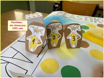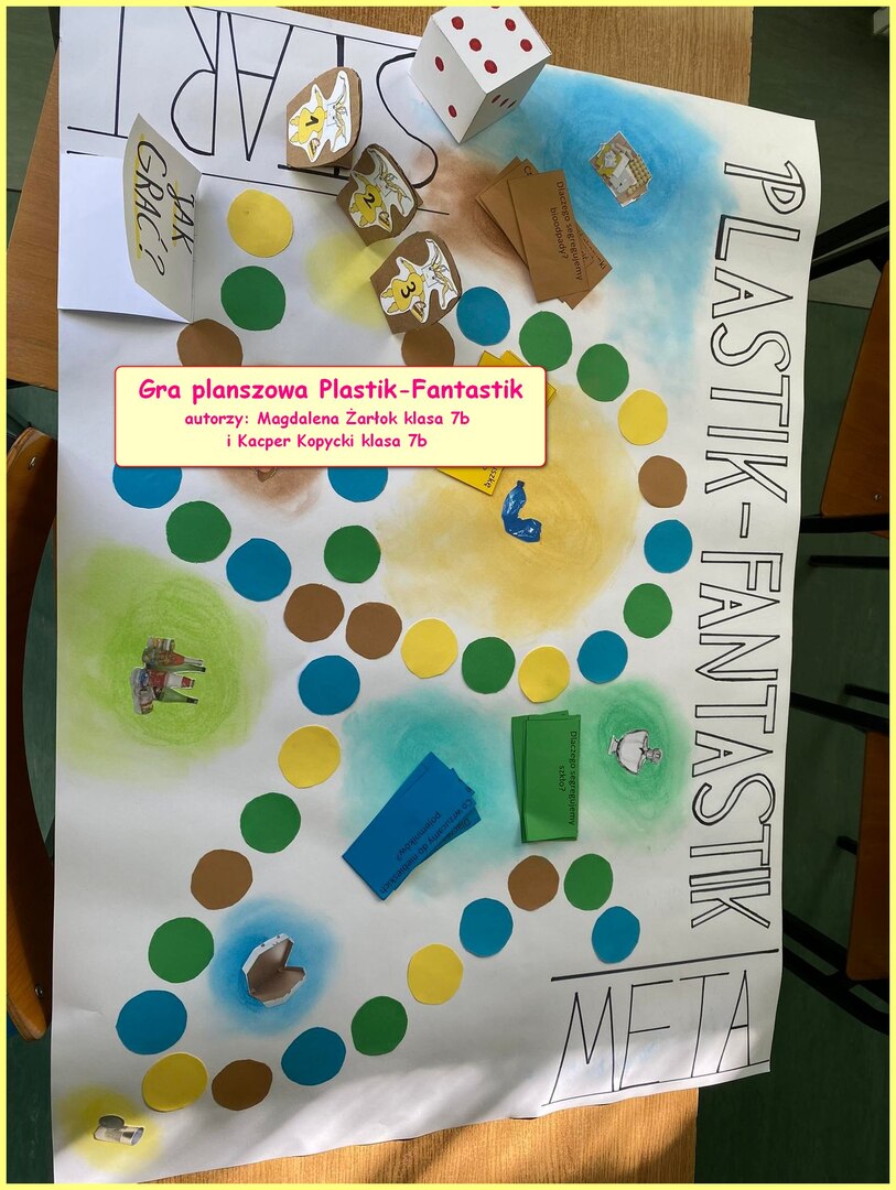 W tym roku nasi uczniowie wzięli udział w IX edycji konkursu ekologicznego Mistrz Recyklingu i Przyjaciele. Celem konkursu było kształtowanie prawidłowych postaw proekologicznych zmierzających do selektywnej zbiórki, odzysku i recyklingu odpadów z gospodarstw domowych i zużytego sprzętu elektrycznego i elektronicznego. Na potrzeby konkursu powstał ekozespół w składzie Magdalena Żarłok i Kacper Kopycki –uczniowie z klasy 7b. Uczniowie wykonali dwa obowiązkowe zadania: maskotkę wybranego urządzenia na prąd lub baterie- PRĄDUSIA oraz rysunek bohatera selektywnej zbiórki odpadów- PLASTIKÓWA i projekt gry planszowej z jego udziałem. Gra Plastki- fantastik posłuży do pogłębiania wiedzy proekologicznej wśród uczniów. Uczniom gratulujemy oryginalnego pomysłu i zaangażowania. Z niecierpliwością czekamy na wyniki konkursu. Trzymajcie kciuki. Zachęcamy do obejrzenia filmiku i zdjęć naszej pracy.