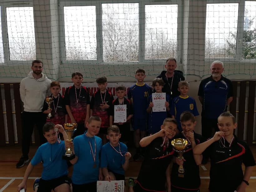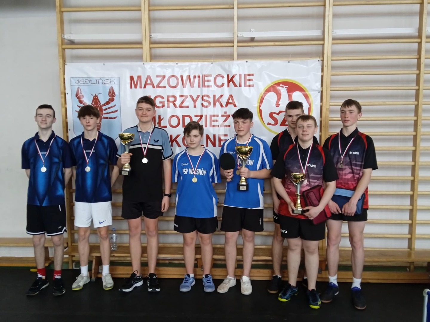 Niezwykle skutecznie zaprezentowały się drużyny ZSP Jedlińsk w eliminacjach międzypowiatowych XXV Mazowieckich Igrzysk Dzieci i Młodzieży Szkolnej w drużynowym tenisie stołowym. Do Jedlińska przyjechało 46 zespołów szkolnych, które rywalizowały o prawo występu w finałach wojewódzkich w czterech kategoriach. W pierwszym dniu walczyli chłopcy, w tym dwie ekipy Jedlińska. Po cichu liczyliśmy na dobry start naszych chłopaków, szczególnie drużyny starszej. Jan Ziółek, Filip Szymczak i Michał Sułek nie zawiedli. W grupie wygrali wszystkie spotkania. W ćwierćfinale pokonali PSP nr 3 z Kozienic 3:0. W półfinale w tym samym stosunku „odprawili” Bikówek. Finał zakończył się przegraną 1:3 z PSP Wałsnów ale chłopcy już mogli się cieszyć ze srebrnych medali i awansu na zawody wojewódzkie. Rewelacyjnie zagrała młodsza drużyna, którą tworzyli w komplecie trzecioklasiści. W rywalizacji z szóstoklasistami i piątoklasistami z innych szkół warunki fizyczne mogły odegrać istotną rolę Tymczasem nasi pokonali kolejno po 3:0 zespoły Głowaczowa, Ciepielowa i Lipska. W ćwierćfinale wygrali z drużyną ze Starej Błotnicy, tracąc pierwszego seta. Półfinał z PSP Nr 6 z Radomia decydował o awansie. Radomianie byli przekonani, że to spotkanie wygrają. Nic z tego. Mimo porażki w pierwszej grze Janka Ferusia, w kolejnej Szymon Kowalski wyrównał wynik. W grze deblowej Szymon i Kacper Bieniek zagrali świetnie i pokonali rywali 2: 0 w setach do 3 i 4. Decydujący punkt dorzuca Feruś i mecz wygrywamy 3:1! Mamy drugi zespół w finale Mazowsza. W meczu o złoty medal zwyciężyli faworyci – reprezentanci PSP nr 17 Radom, którzy wygrali z Jedlińskiem 3:0. W drugim dniu wystąpiły dziewczynki młodsze. Nasz zespół, rozstawiony z nr 1, bronił złotego medalu wywalczonego przed rokiem. Nikola Belica i trzecioklasistki Maja Małek, Zuzia Jarosińska oraz Lila Dębniak wygrywały gładko po 3:0. Jedynie pojedynek Nikoli z koleżanką klubową, reprezentującą Kozłów, dostarczył kibicom nieco emocji. Belica, po wygranym pierwszym secie, uległa w grze na przewagi w drugim. Decydujący set odbył się pod dyktando Nikoli. Finał z Lesznowolą zakończył się wynikiem 3:0. W finałach wojewódzkich region radomski reprezentować będzie aż trzy zespoły ZSP Jedlińsk.