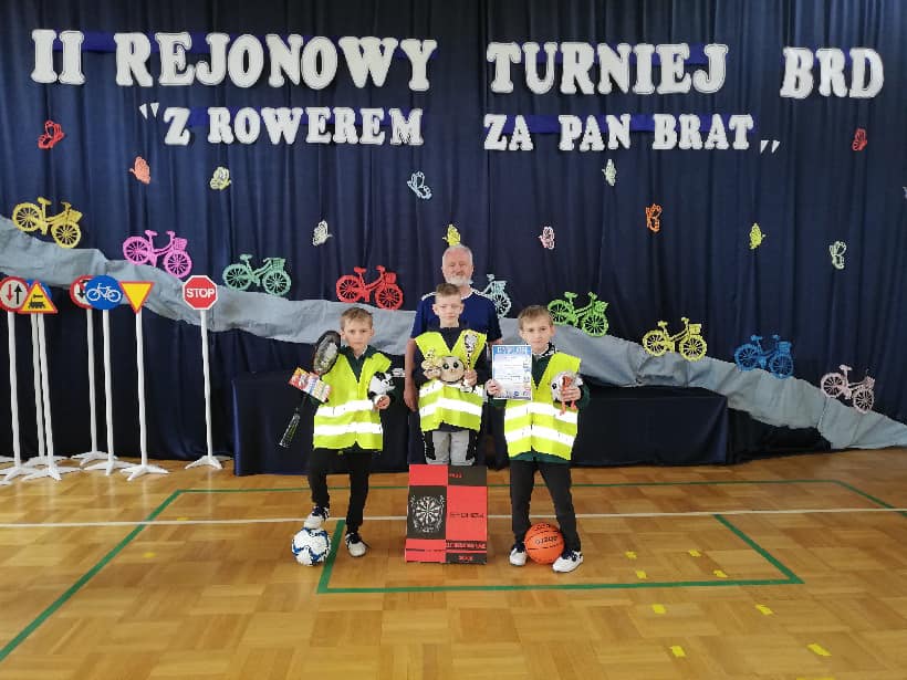 Adam Bogacki, Dawid Frączyk i Szymon Frączyk z klasy Va wygrali drużynową rywalizację w II Rejonowym Turnieju BRD „Z rowerem za pan brat”, którego gospodarzem i organizatorem była PSP w Starych Zawadach. Uczestnicy musieli zmierzyć się z pytaniami testowymi z zakresu zasad ruchu pieszych i rowerzystów oraz zasad pierwszeństwa przejazdu na drodze. Drugie zadanie to wykazanie się umiejętnością pokonywania przeszkód umieszczonych na torze, który należało przejechać w określonej kolejności bez podpórek, potrąceń czy niedozwolonych zjazdów. Trzecią konkurencją była jazda po miasteczku ruchu drogowego zgodnie z przepisami. Na zakończenie organizatorzy przygotowali konkurencję drużynową, w której należało ułożyć na czas puzzle obrazujące znaki drogowe. W gronie dziewięciu szkół ekipa Jedlińska spisała się najlepiej pokonując dwie drużyny gospodarzy oraz szkoły z Radomia, Wilkowa, Jedlanki, Wierzchowin, Ludwikowa i Bierwiec. W klasyfikacji indywidualnej po prymat sięgnął Adam Bogacki, który wygrał wszystkie konkurencje. Organizatorzy zadbali o bogatą oprawę imprezy. Był pokaz udzielania pierwszej pomocy przedmedycznej, prezentacja wozu bojowego straży pożarnej i inne atrakcje. Wszyscy uczestnicy otrzymali upominki w postaci maskotek a najlepszych uhonorowano wartościowymi nagrodami rzeczowymi, pucharami i pamiątkowymi statuetkami.