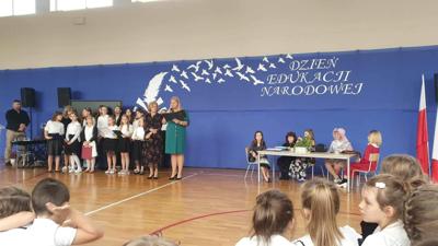 Dzień nauczyciela jest okazją do wyrażania wdzięczności za wysiłek i wielkie serce wkładane na rzecz pracy z dziećmi. W tym dniu pamiętamy o wszystkich nauczycielach i pracownikach szkoły: obecnych i emerytowanych. I właśnie z tej okazji 13 października cała społeczność szkolna spotkała się na uroczystej akademii. Uczniowie z klas 4c, 6b i 6c wraz z zespołem muzycznym przygotowali program artystyczny, który składał się z dwóch części: historycznej i rozrywkowej. Mogliśmy obejrzeć krótki film przedstawiający historię nauki i oświaty w Polsce a także podziwiać piękny taniec – krakowiaka w wykonaniu uczniów z klasy 3c. Aktorzy wcielający się w role nauczycieli w zabawny sposób zaprezentowali w przedstawieniu współczesny obraz szkoły i pracę nauczyciela. Samorząd Uczniowski złożył życzenia i podarował wszystkim pracownikom małe upominki. Na koniec Pan Dyrektor podziękował za trud wkładany w wychowanie i kształcenie dzieci, życząc jednocześnie satysfakcji i radości z wykonywanej pracy, a także dalszych sukcesów.