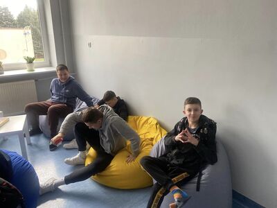 Samorząd Uczniowski w porozumieniu z Dyrektorem p. Jackiem Tuzinkiem oraz Radą Rodziców zorganizował w szkole kącik, w którym uczniowie mogą się zrelaksować podczas przerw. W czasie ferii zimowych samodzielnie pomalowali część korytarza, pozyskali środki finansowe z dobrowolnych wpłat od uczniów. Oczywiście mogli liczyć na wsparcie finansowe z budżetu szkoły oraz ze środków Rady Rodziców.