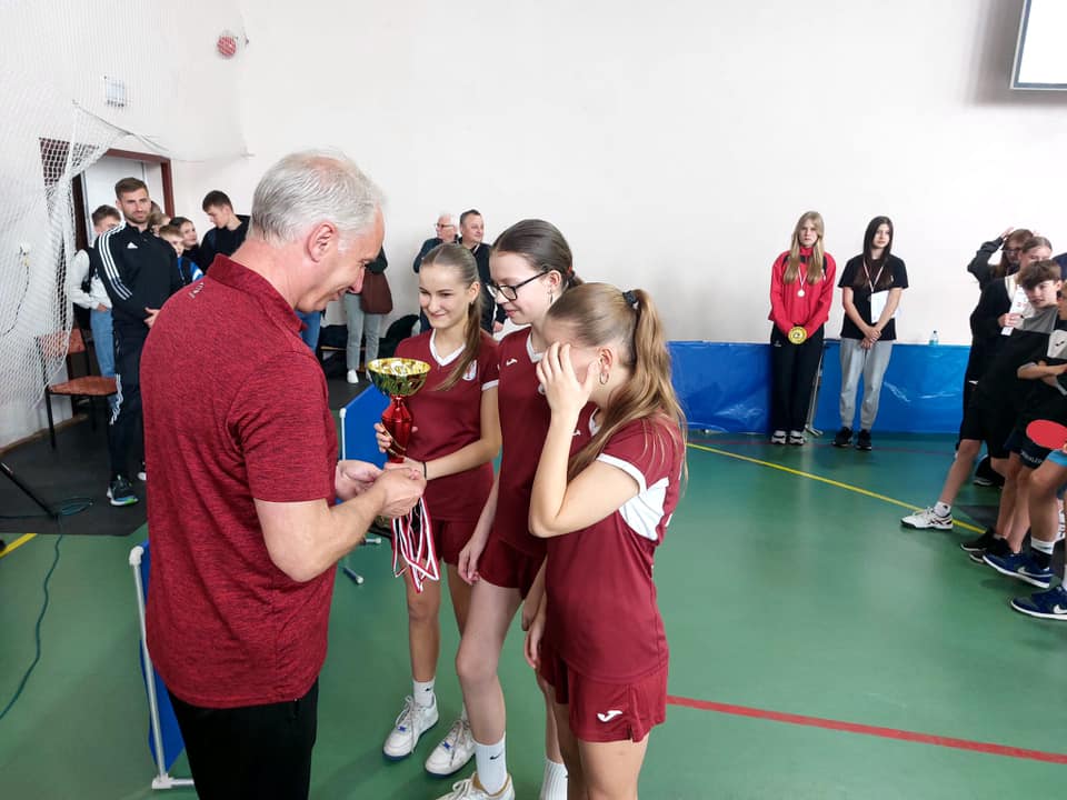 Przez dwa dni sale gimnastyczne ZSP w Jedlińsku zostały opanowane przez tenisistów stołowych. W eliminacjach międzypowiatowych XXVI Mazowieckich Igrzysk Dzieci i Młodzieży Szkolnej w drużynowym tenisie stołowym wystąpiło 48 zespołów szkolnych, w tym 4 drużyny naszej szkoły. Rywalizowano o prawo występu w finałach wojewódzkich w czterech kategoriach. Występ ekip Jedlińska okazał się znakomity, uwieńczony zdobyciem czterech medali. Złote krążki wywalczyły drużyny dziewcząt w obu kategoriach wiekowych. W młodszej, Maja Małek i Liliana Dębniak wygrały wszystkie mecze po 3:0, tracąc w całym turnieju zaledwie 2 sety. Medal w starszej grupie, i to od razu złoty, został zdobyty po trzyletniej przerwie. Liderka ekipy, Nikola Belica, nie przegrała żadnej gry a dzielnie jej sekundowały siostry Maja i Nikola Żaczek. W półfinale doszło do rewanżu z ekipą z Kozłowa, z którą w eliminacjach powiatowych nasza drużyna przegrała 2:3. Tym razem, zawodniczki Jedlińska okazały się lepsze, wygrywając przekonywująco 3:1. Finał ze Starym Gozdem okazał się łatwiejszy. Gładkie 3:0 bez większych emocji. Wśród chłopców czwartoklasiści skutecznie obronili tytuł wicemistrzów rejonu sprzed roku. Jan Feruś, Szymon Kowalski i Kacper Bieniek, w rywalizacji z szósto- i piątoklasistami z innych szkół, dotarli do finału. W nim, ulegli ponownie ubiegłorocznym mistrzom Mazowsza – zawodnikom z PSP NR 17 z Radomia 0:3. By sięgnąć po srebrne medale chłopcy musieli się sporo napracować. Emocji nie brakowało, szczególnie w wygranych po 3:2 meczach z PSP Nr 5 z Radomia, i w półfinale, z ekipą Starego Gozdu. Bardzo miłą niespodziankę sprawili chłopcy starsi. Kacper Brudnicki i Maciej Nowakowski dotarli aż do półfinału i dopiero w nim ulegli późniejszym złotym medalistom z PSP Nr 6 z Radomia. Podopieczni Sławomira Słomki, w meczu o 3. miejsce, zmierzyli się z PSP Lipsko. Rozstrzygnęli tę rywalizację na swoją korzyść, zapewniając sobie brązowe medale. Cztery miejsca na podium, awans trzech ekip do finału wojewódzkiego to olbrzymi sukces naszych uczniów. Wielkie brawa!
