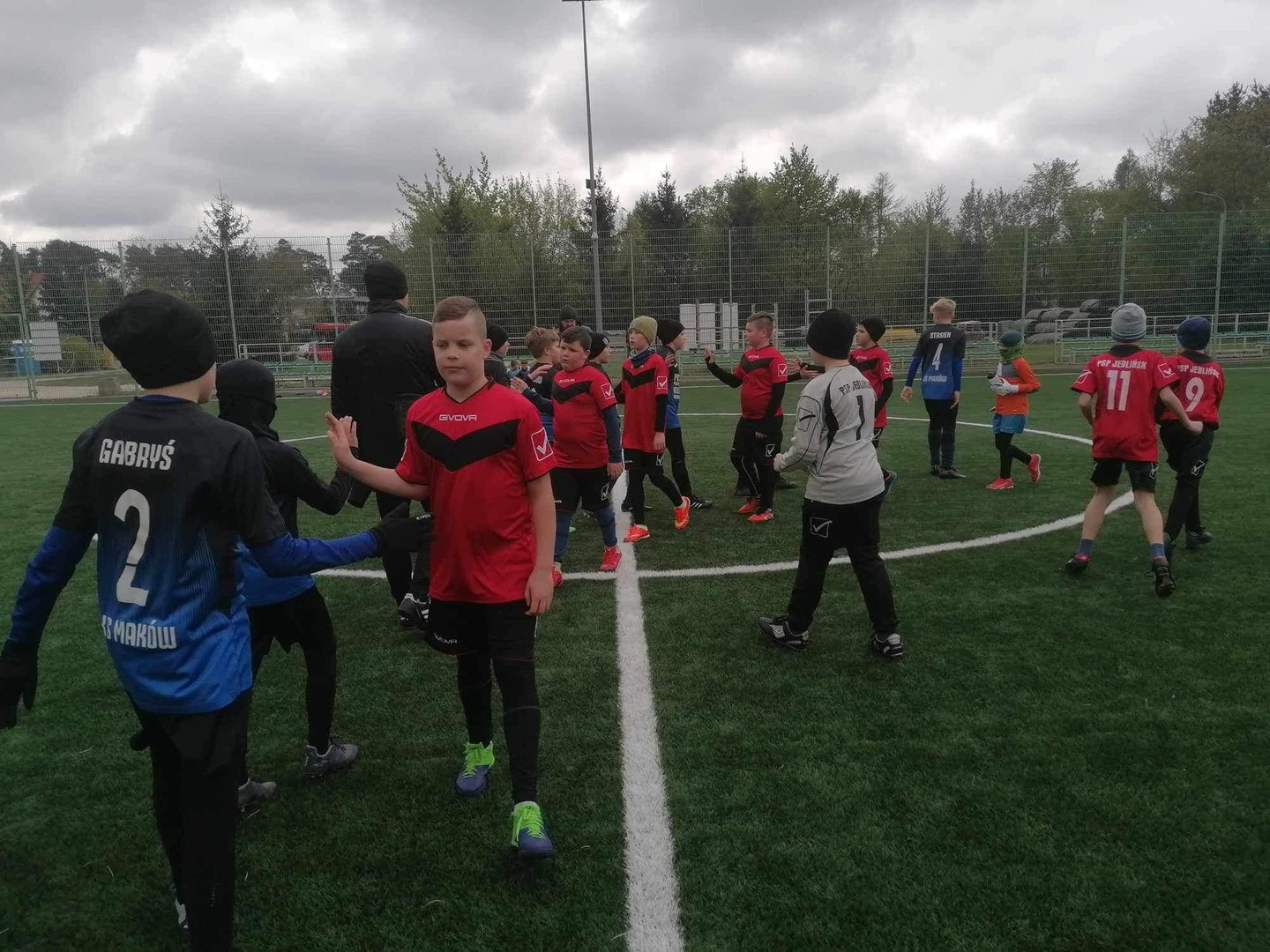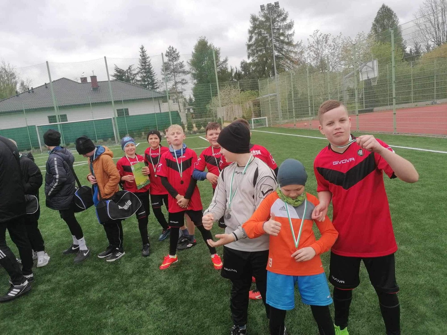 Z okolicznościowymi medalami i dyplomami imiennymi wróciła drużyna ZSP Jedlińsk z eliminacji powiatowych XXIV edycji o Puchar Tymbarku w piłce nożnej. Grający w kategorii U12, zespół naszej szkoły zmierzył się ze starszymi o rok rywalami z Gozdu, Makowa, Makowca i gospodarzami z Jedlni Letnisko, zajmując piąte miejsce. Mimo, że drużynę tworzyli chłopcy, w większości trenujący w Akademii Piłkarskiej Drogowiec Jedlińsk, to przewaga umiejętności technicznych przeciwników była wyraźna. Rywale górowali także pod względem warunków fizycznych. Nasi chłopcy na początku byli wyraźnie stremowani ale z meczu na mecz, umiejętnie instruowani przez opiekuna Macieja Hajduka, grali coraz lepiej. Mimo przegranych, walczyli z pasją i zaangażowaniem. Zdobyte doświadczenie zaprocentuje w kolejnych turniejach.
