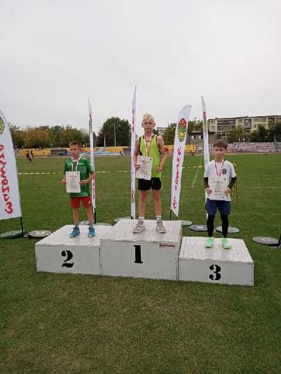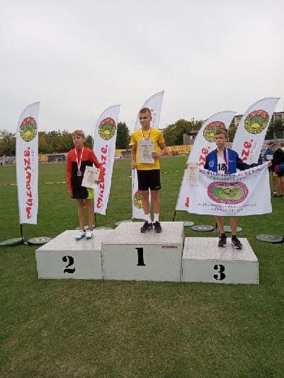 49-osobowa reprezentacja uczniów z klas V-VIII ZSP Jedlińsk wzięła udział w kolejnej edycji Międzynarodowych Zawodów Lekkoatletycznych im. Henryka Jakimiaka w Siedlcach. Nasi przedstawiciele zdobyli łącznie 14 medali: 4 złote, 4 srebrne i 6 brązowych, zapewniając sobie wygraną w klasyfikacji drużynowej szkół To drugie zwycięstwo z rzędu. ZSP Jedlińsk zgromadził 152 pkt i wyprzedził SP Zielonki- Parcela 145,5 pkt oraz SP Maciejowice 130 pkt. Na 14. miejscu uplasowała się najlepsza ekipa zagraniczna z Mariampola na Litwie. Łącznie sklasyfikowano 61 placówek. Wygrana naszej szkoły szczególnie cenna, bowiem w zawodach nie wzięli udziału uczniowie z rocznika klas czwartych, przebywający na wycieczce. Indywidualnie, w swoich kategoriach wiekowych, złote medale wywalczyli: Kacper Bieniek w rzucie piłką palantową, Antoni Kowalczyk i Dominik Grabowski w biegu na dystansie 1000m oraz Filip Molenda na 600m. Na drugim stopniu podium stanęli: Iga Lipiec w pchnięciu kulą, Maciej Karasek na 1000m oraz Natalia Czerniawska i Jędrzej Machniak w skoku w dal. Brązowe krążki przypadły: Ali Auguściak i Mai Małek w rzucie piłką palantową, Karolowi Gołdzie, Jakubowi Szelidze i Olkowi Kacprzakowi na 600m oraz Julii Bukowskiej w pchnięciu kulą. Wkład punktowy, za zajęcie miejsc 4-8, do klasyfikacji szkół, wniosło jeszcze 22 naszych uczniów: Piotr Skrzypczyński, Tymoteusz Makulski, Wojciech Tarnowski, Szymon Kowalski, Amelia Gryz, Maja Trzeciak, Nikola Stawczyk, Wiktoria Woźniak, Zuzanna Jarosińska, Emil Gryz, Wiktor Simlat, Antoni Ćwiklak oraz biegający w sztafetach 4x100m lub olimpijskiej: Łucja Walczak, Alicja Warchoł, Alicja Czarnecka, Nikola Żaczek, Wiktoria Stawczyk, Weronika Janiec, Dawid Brzeziński, Franciszek Kustra, Filip Wójcicki i Marcel Michalski. Brawa dla wszystkich! Pieczę nad ekipą sprawowali: Radosław Ofiara, Sławomir Słomka i Krystian Kilar.