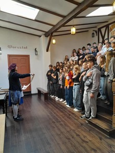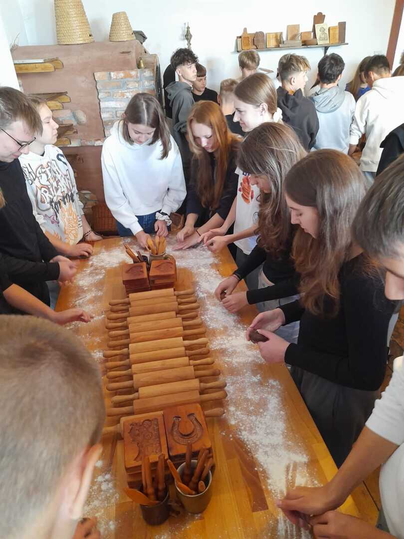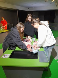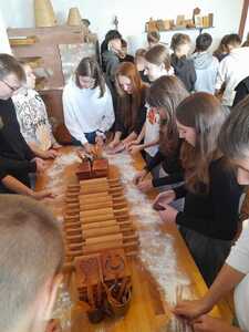 Kolejny dzień to Centrum Nowoczesności -Młyn Wiedzy. Jest to interaktywne centrum, które oferuje bogatą ofertę z różnych dziedzin nauki: fizyki, chemii, biologii, geografii. Uczniowie poprzez zabawę, badanie i doświadczenia poznawali tajniki wiedzy, np. działanie wodnego młyna, kapsuły galaktycznej. Ostatniego dnia udaliśmy sie do Grębocina, gdzie w zabytkowym kościółku z XIII wieku (obiekt Unesco) przenieśliśmy sie do krainy papieru i druku w Interaktywnym Muzeum Piśmiennictwa i Drukarstwa. Znajdują się tu unikatowe zbiory pras drukarskich. Dzieci próbowały swoich sił w kaligrafii, tworzyli papier, czerpiąc go z kadzi papierniczej za pomocą sita. Ostatnim punktem wycieczki był spacer po Ciechocinku. Mimo kapryśnej pogody, która od początku utrudniała zwiedzanie pięknego "piernikowego miasta" mamy nadzieję że wycieczka na długo pozostanie w pamięci roześmianych uczestników. Szczególne podziękowania dla wszystkich, którzy pomagali przy realizacji projektu.