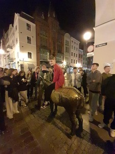 Drugiego i trzeciego dnia przyszedł czas na zwiedzanie Torunia: Rynek, Katedrę Janów, Krzywą Wieżę, Muzeum Podróżników im. Tonego Halika, Muzeum Dalekiego Wschodu w Kamienicy pod Gwiazdą a w godzinach popołudniowych wszyscy szaleli w kilkupiętrowym Centrum Nowoczesności Młyn Wiedzy. Po obiadokolacji uczniowie z opiekunami wybrali się na spacer po pięknie oświetlonym Toruniu . Nie zabrakło chętnych do zdjęcia z osiołkiem i Filusiem - psem prof. Filutka. Trzeciego dnia nadszedł czas na warsztaty piernikarskie w Muzeum Piernika. Po złożeniu przysięgi oraz zapoznaniu się z historią i przepisem na toruński przysmak każdy mógł go wykonać własnoręcznie. Jak przystało na młodych czeladników wszyscy z zapałem zabrali się do pracy . W rodzinnym mieście Mikołaja Kopernika nie mogło także zabraknąć seansu w Planetarium. Wszyscy pełni wrażeń z żalem opuszczali piękny Toruń.