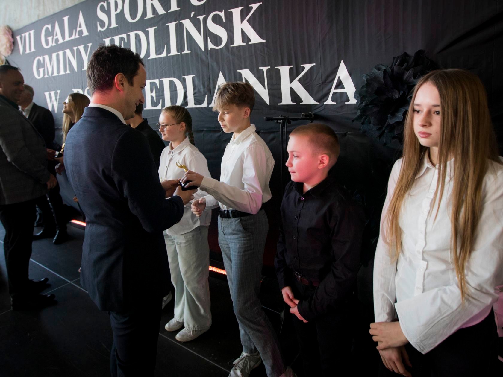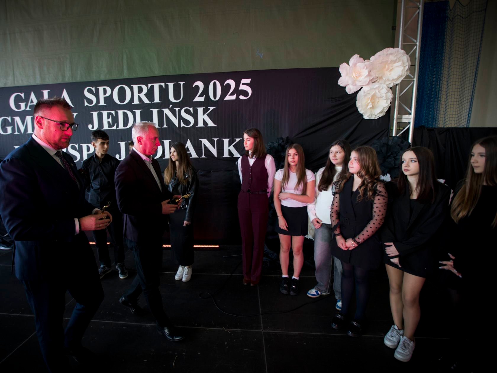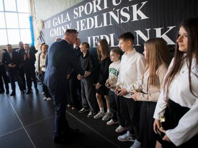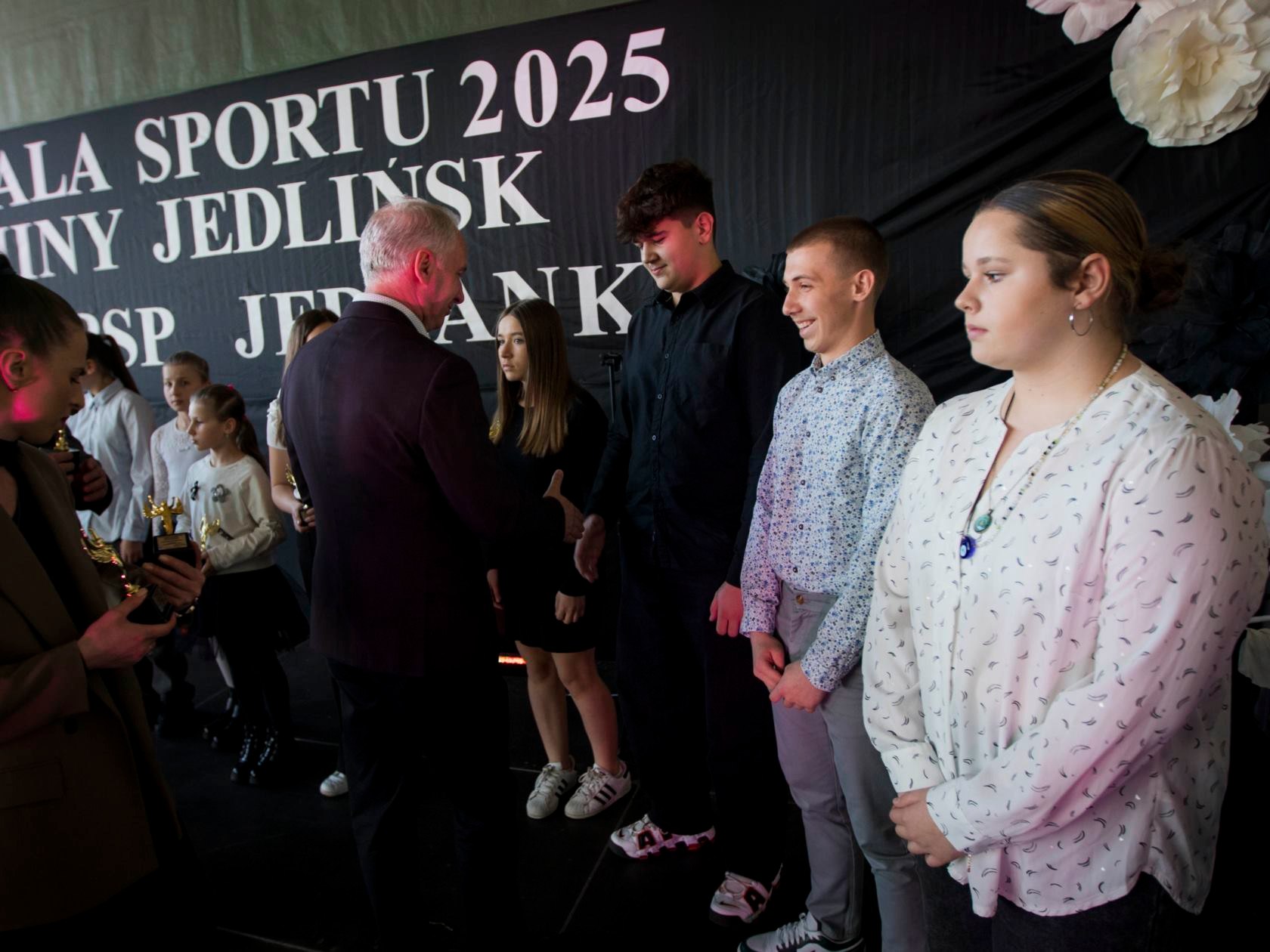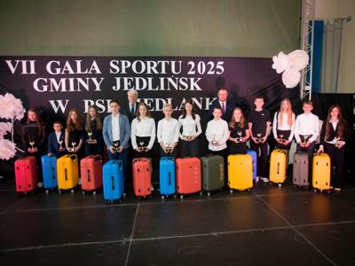 W Publicznej Szkole Podstawowej w Jedlance podsumowano sportowy rok w naszej gminie. Uroczystość odbyła się po raz siódmy. Kamil Dziewierz, Wójt Gminy Jedlińsk, uhonorował okolicznościowymi statuetkami uczniów, którzy wykazali się wysokim osiągnięciami sportowymi w 2024 roku. W gronie wyróżnionych wystąpiło 80 uczniów lub ubiegłorocznych absolwentów ZSP w Jedlińsku. Sześcioro z nich reprezentowało kluby sportowe naszej gminy oraz stowarzyszenia sportowe z Radomia. Dwadzieścia jeden osób otrzymało także nagrody rzeczowe w postaci walizek podróżnych. Pamiątkowe statuetki wręczono trenerom i nauczycielom wychowania fizycznego. Specjalną nagrodę przyznano gościowi honorowemu, którym w bieżącym roku okazał się Bartłomiej Wójcik, absolwent szkół w Jedlińsku. Aktualnie jest siatkarzem w PlusLidze reprezentującym klub Nowak-Mosty MKS Będzin. Warto dodać, że wyróżnieni uczniowie ZSP w Jedlińsku są medalistami lub uczestnikami w rywalizacji indywidualnej lub drużynowej finałów zawodów krajowych, Międzynarodowych Zawodów Lekkoatletycznych im. Henryka Jakimiaka w Siedlcach, finałów wojewódzkich i międzypowiatowych imprez w ramach Mazowieckich Igrzysk Dzieci i Młodzieży Szkolnej oraz zawodów pod egidą polskich związków sportowych różnych dyscyplin sportowych. Serdecznie gratulujemy wszystkim uczniom i życzymy kolejnych znakomitych wyników w bieżącym roku.