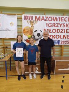 Komplet 16-tu szkolnych drużyn wystartował w Jeżewie (powiat sierpecki) w finale wojewódzkim XXVII Mazowieckich Igrzysk Dzieci w tenisie stołowym dziewcząt. Zespół Jedlińska, złożony z piątoklasistek Mai Małek i Liliany Dębniak, był dolosowywany do rozstawionych ekip. Turniejowa „drabinka” nie była korzystna i awans do najlepszej ósemki wydawał się trudny do osiągnięcia. Już pierwszy mecz, z PSP Brudki Stare, okazał się dużą przeszkodą. Po dwóch pojedynkach przeciwniczki prowadziły 2:0. Po wygranym deblu przez naszą parę dziewczęta „obudziły się”. Wygrały dwa kolejne pojedynki i cały mecz 3:2. Niespodziewana wygrana 3:1 z wysoko rozstawioną ekipą z Nadarzyna przyniosła awans do grona sześciu najlepszych drużyn. W pojedynku o awans do finału jedlińszczanki przegrały z późniejszymi złotymi medalistkami z PSP Jadwisin 0:3. W kolejnym meczu zmierzyły się z PSP z Bąkowej zakończonym gładkim zwycięstwem 3:0. Mecz o podium z rozstawionymi z nr 2 reprezentantkami Serocka zakończył się wygraną przeciwniczek 3:0. Tenisistkom Jedlińska przypadła wysoka, czwarta lokata. Brawo!