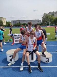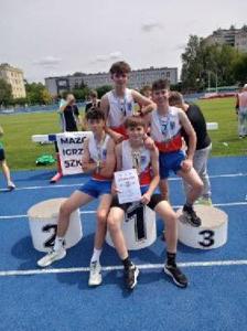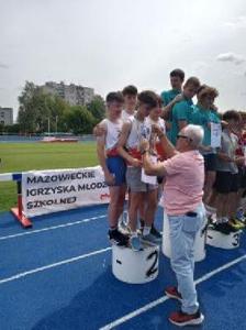 Na drugim stopniu podium stanęła sztafeta olimpijska chłopców ZSP Jedlińsk w finałowych zmaganiach XXVII Mazowieckich Igrzysk Młodzieży Szkolnej w lekkiej atletyce. Na pierwszej zmianie, na dystansie 800m, pobiegł Maciej Karasek, który, biegnąc za reprezentantem PSP Nr 124 z Warszawy, wywalczył dużą przewagę. Zadaniem pozostałych członków sztafety było utrzymanie drugiej lokaty. Dawid Brzeziński (400m), Antoni Piwowarczyk (200m) i Piotr Skrzypczyński (100m) znakomicie wywiązali się z powierzonej roli. Podopieczni Radosława Ofiary i Sławomira Słomki pobiegli po srebrny medal w czasie 3,45,71 tracąc do rywali z Warszawy sekundę. Gratulacje chłopcy! Brawa należą się pozostałym reprezentantom szkoły: Łucji Walczak (100m), Weronice Janiec (1000m) i Tymoteuszowi Makulskiemu (200m), którzy postarali się o rekordy życiowe ale zajęli dalsze lokaty. To ostatni finał wojewódzki z udziałem naszych uczniów w tegorocznej edycji igrzysk. Sześć medali, wiele punktowanych miejsc w finałach wojewódzkich to dorobek reprezentantów ZSP Jedlińsk, nad przygotowaniem których czuwali nauczyciele: NataliaŻyła, Sławomir Słomka, Radosław Ofiara i Krystian Kilar. Oficjalne podsumowanie igrzysk odbędzie się we wrześniu ale uzyskane wyniki wskazują, że w kategorii młodzieży nasza szkoła uplasuje się na podium igrzysk, zaś w kategorii dzieci w pierwszej dziesiątce. To był bardzo dobry sportowy rok w wykonaniu uczniów ZSP Jedlińsk.
