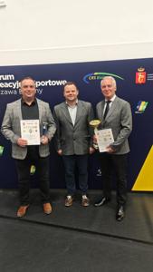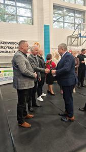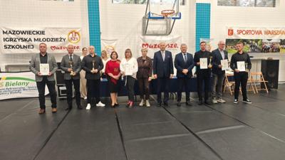 Olbrzymi powód do dumy mają uczniowie naszej szkoły, którzy okazali się najlepsi, po raz trzeci z rzędu, we współzawodnictwie sportowym szkół, w ramach XXVII Mazowieckich Igrzysk Dzieci i Młodzieży Szkolnej, za rok szkolny 2024/2025. W stołecznym Centrum Rekreacyjno – Sportowym na Bielanach, ogłoszono wyniki rywalizacji szkół w klasyfikacji generalnej, we wszystkich dyscyplinach sportowych, objętych programem igrzysk. W kategorii młodzieży, ZSP Jedlińsk uplasował się na pierwszym miejscu z dorobkiem 57 pkt., wyprzedzając SP Nr 344 z Warszawy - 50 pkt. i SP Serock 48 pkt. Łącznie, w finałach igrzysk wystąpili uczniowie 454 placówek, a punkty do rywalizacji zdobyło 360 szkół. Wśród dzieci, wygrała SP Nr 204 z Warszawy - 73 pkt. przed SP Nr 4 z Pruszkowa - 70 pkt. i SP Nr 3 w Łomiankach - 50 pkt. Naszej szkole do podium zabrakło zaledwie 1,5 pkt., którą sklasyfikowano na szóstym miejscu za zgromadzenie 48,5 pkt. W finałach wzięli udział sportowcy z 372 szkół, a punkty przyznano 263 placówkom. Na wyniki te złożyły się rezultaty prawie 80 uczniów z klas V –VIII, w tym tegorocznych absolwentów szkoły, których do startów przygotowywali nauczyciele Natalia Żyła, Krystian Kilar, Radosław Ofiara i Sławomir Słomka. Dwaj ostatni, w imieniu całej społeczności ZSP w Jedlińsku, odebrali okolicznościowe puchary i dyplomy, które wręczyli Prezes Szkolnego Związku Sportowego Warszawy i Mazowsza - Iwona Zielińska-Mróz oraz Honorowy Prezes SZSWiM – Jan Dorosiewicz. Wyróżnionym placówkom przyznano nagrody pieniężne, z przeznaczeniem na zakup sprzętu sportowego. Naszej szkole przypadło 5 tys. zł za wygraną w kategorii młodzieży i 2,5 tys. zł za szóstą lokatę wśród dzieci. Wielkie gratulacje dla wszystkich uczniów, którzy przyczynili się do tego sukcesu! Słowa podziękowania kierujemy także do Dyrekcji Szkoły i Rodziców za wsparcie i pomoc w organizacji sportowych przedsięwzięć.