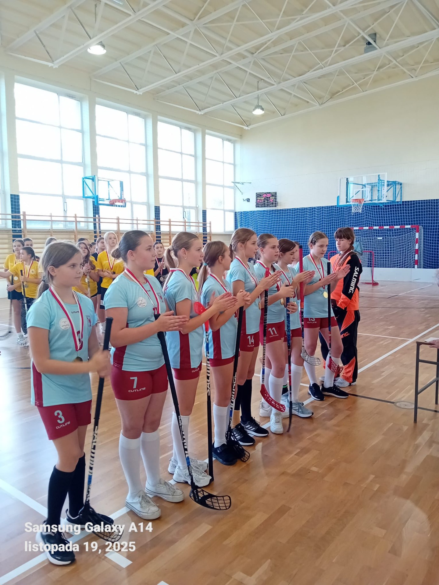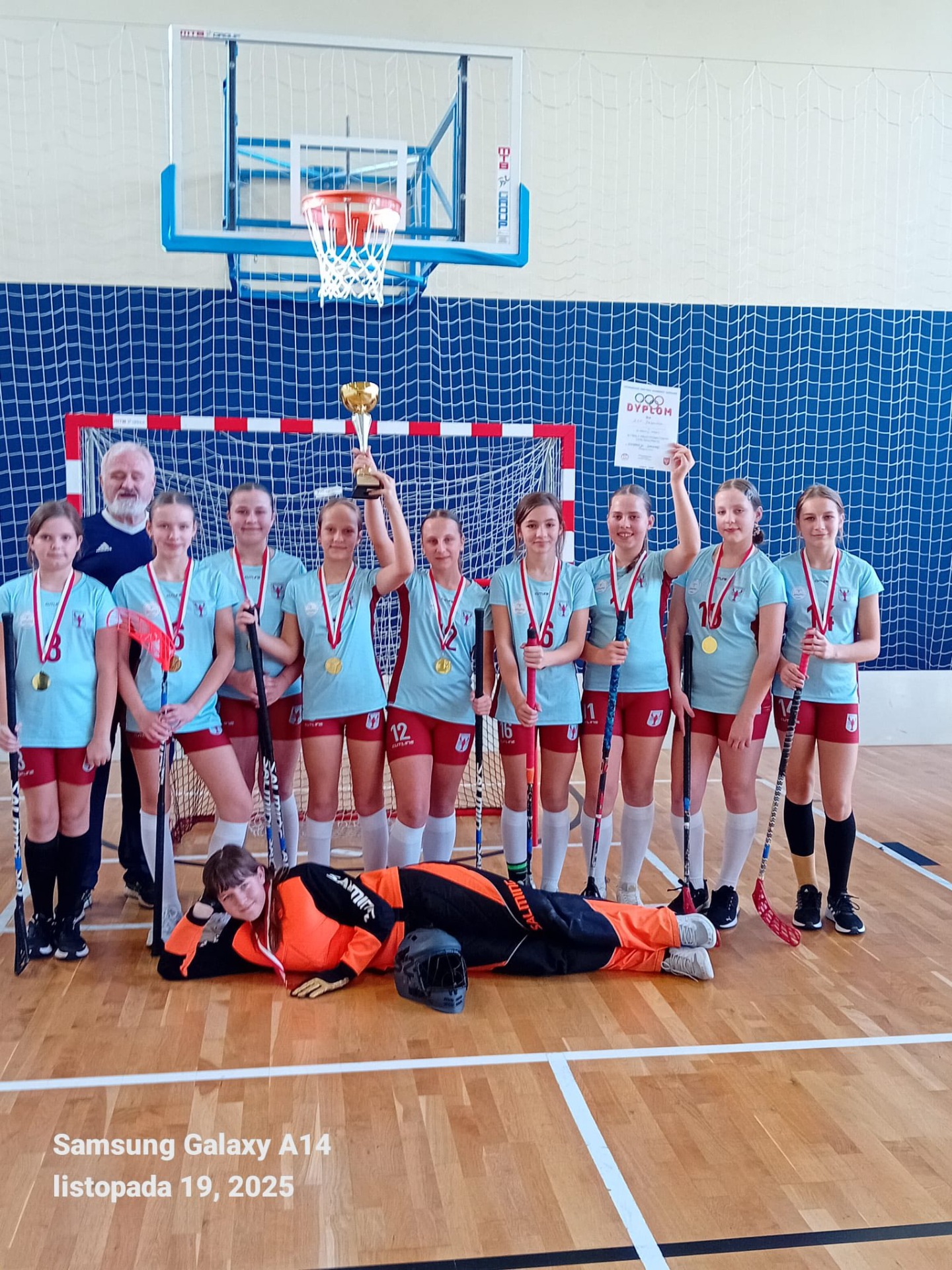 Znakomicie rozegrała turniej unihokeja drużyna ZSP Jedlińsk, w ramach eliminacji międzypowiatowych XXVIII Mazowieckich Igrzysk Dzieci. Dziewczęta pokonały kolejno: gospodynie – radomską „Dziewiątkę” - 4:0, PSP Nr 1 z Szydłowca 3:2 i PSP z Goszczyna 6:0. Tylko w drugim spotkaniu team z Szydłowca „postawił się” jedlińszczankom. Dla przeciwniczek to było pierwsze starcie, nasze reprezentantki grały „mecz po meczu” (losowanie kolejności gier) i pojawiły się oznaki zmęczenia. Jednak w żadnym spotkaniu przewaga naszego zespołu nie podlegała dyskusji. Oprócz złotego medalu dodatkową nagrodą będzie wyjazd na zawody finałowe na Mazowszu. Gratulacje Dziewczęta! Czekamy na powtórki kolejnych naszych drużyn, które w najbliższym czasie rozegrają swoje zawody międzypowiatowe.