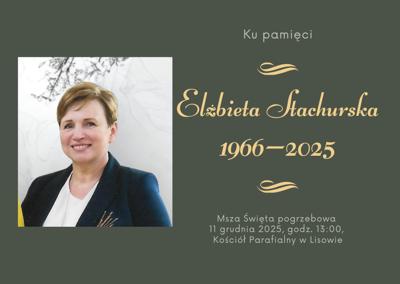 Z ogromnym smutkiem przyjęliśmy wiadomość o śmierci naszej wieloletniej nauczycielki Pani Elżbiety Stachurskiej.